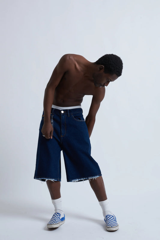 Jorts Baggy Dark Blue Fray